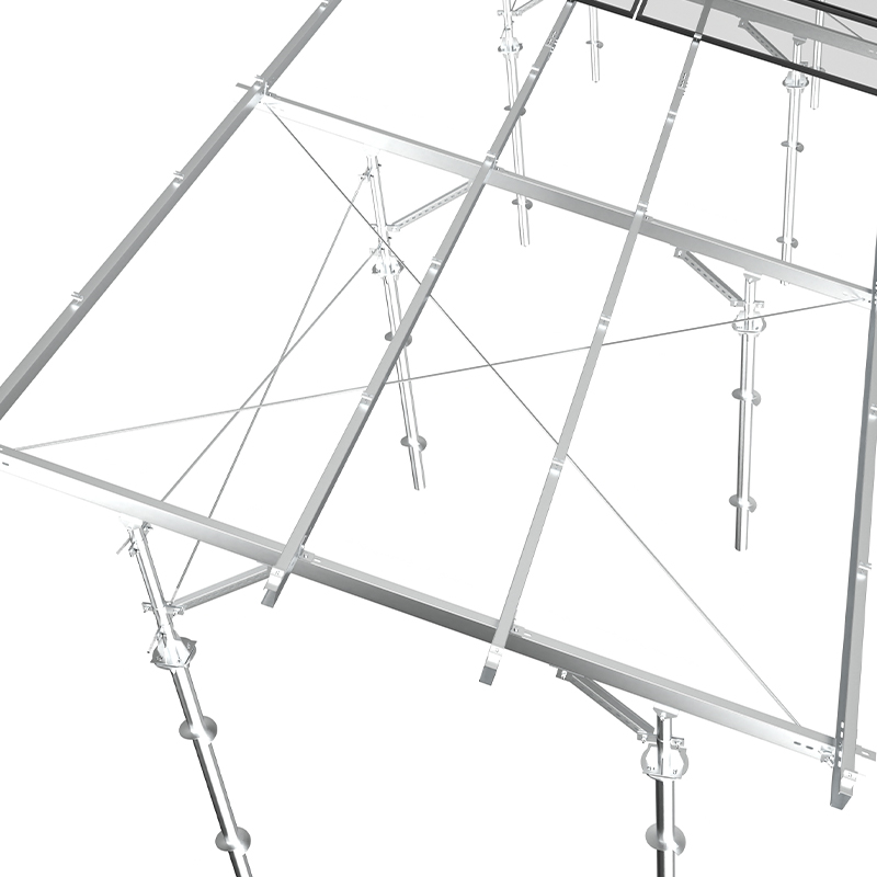 Montáž poľnohospodárskeho solárneho hybridného PV je podporný systém určený pre spoluprácu „poľnohospodárska výsadba fotovoltaickej výroby energie“. Prijíma vysokorúdzovú štruktúru (zvyčajne 2,5-4 metre), aby sa zabezpečilo, že plodiny nižšie sú dobre osvetlené a že poľnohospodárske stroje môžu prejsť bezimpedované. Hlavné telo držiaka je vyrobené z horúcich galvanizovanej oceľovej alebo hliníkovej zliatiny, ktorá je odolná voči korózii a má silnú zaťažovaciu kapacitu. Je stabilne inštalovaný prostredníctvom predbežných hromád alebo základov špirálových hromád a je vhodný pre rôzne terény, ako je napríklad plochá poľnohospodárska pôda a svahová pôda. Dizajn zohľadňuje optimalizáciu uhla sklonu komponentov a rovnováhu prenosu svetla. Systém realizuje „jednu pôdu, dve použitie“, čo nielen zlepšuje komplexnú mieru využitia pôdy, ale tiež pomáha nízkej uhlíkovej transformácii poľnohospodárstva. Je vhodný pre poľnohospodársko-fotovoltaické integrované projekty, ako je pestovanie zeleniny a ovocia a skleníky, a berie do úvahy príjmy z výroby energie a trvalo udržateľný poľnohospodársky rozvoj.