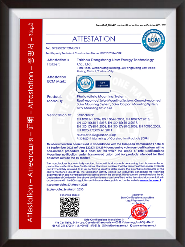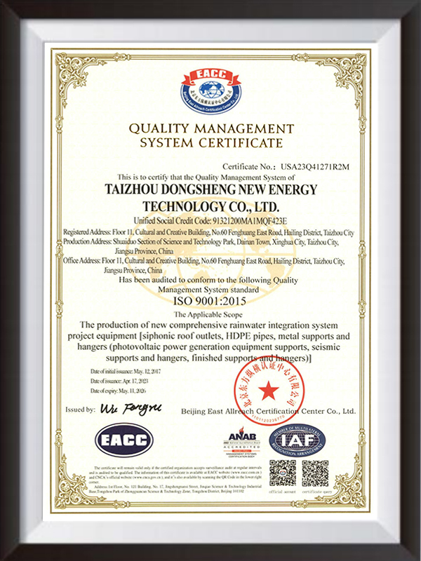 Nadácia Taizhou Dongsheng New Energy Solution Foundation od svojho založenia v roku 2009 sa Taizhou Dongsheng New Energy zaviazala k návrhu, výrobe a integrovanej integrácii držiakov distribuovaných fotovoltaických systémov. Spoločnosť má vyspelý dizajnérsky tím, produktový systém absolvoval certifikáciu systému riadenia kvality ISO a má viacero patentových technológií súvisiacich s PV.